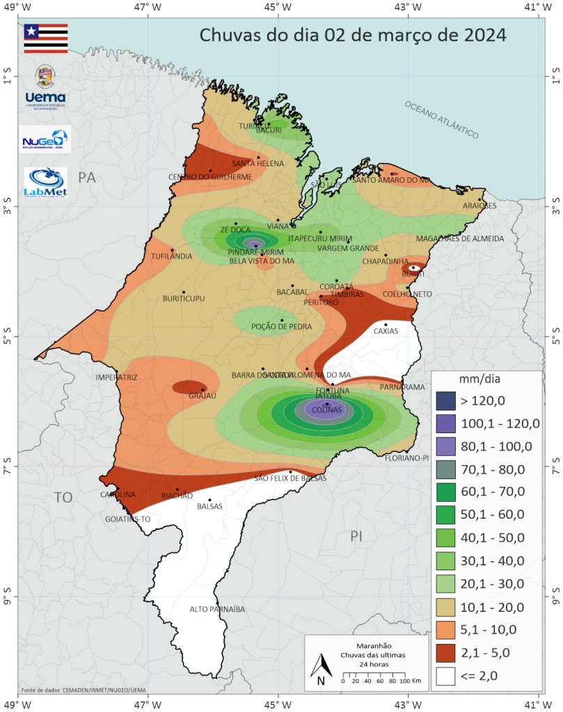 | CHUVAS EM MARÇO DE 2024 NO ESTADO DO MARANHÃO (mm) | |||||