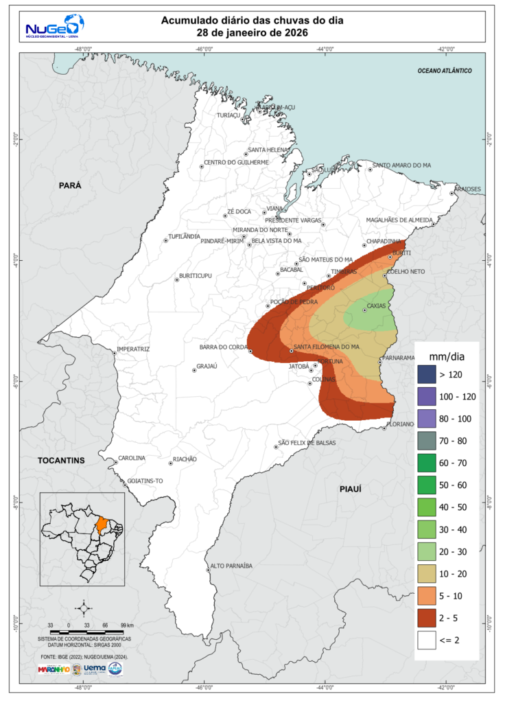 As chuvas das últimas 24 horas representam o acumulado das 10 horas (13 horas UTC) do dia anterior, com as 9 horas (12 UTC) do dia Atual, de acordo com a determinação técnica da Organização Meteorológica Mundial (OMM), que estabelece a leitura instrumental da precipitação no horário sinótico padrão das 12 UTC (9 horas local).