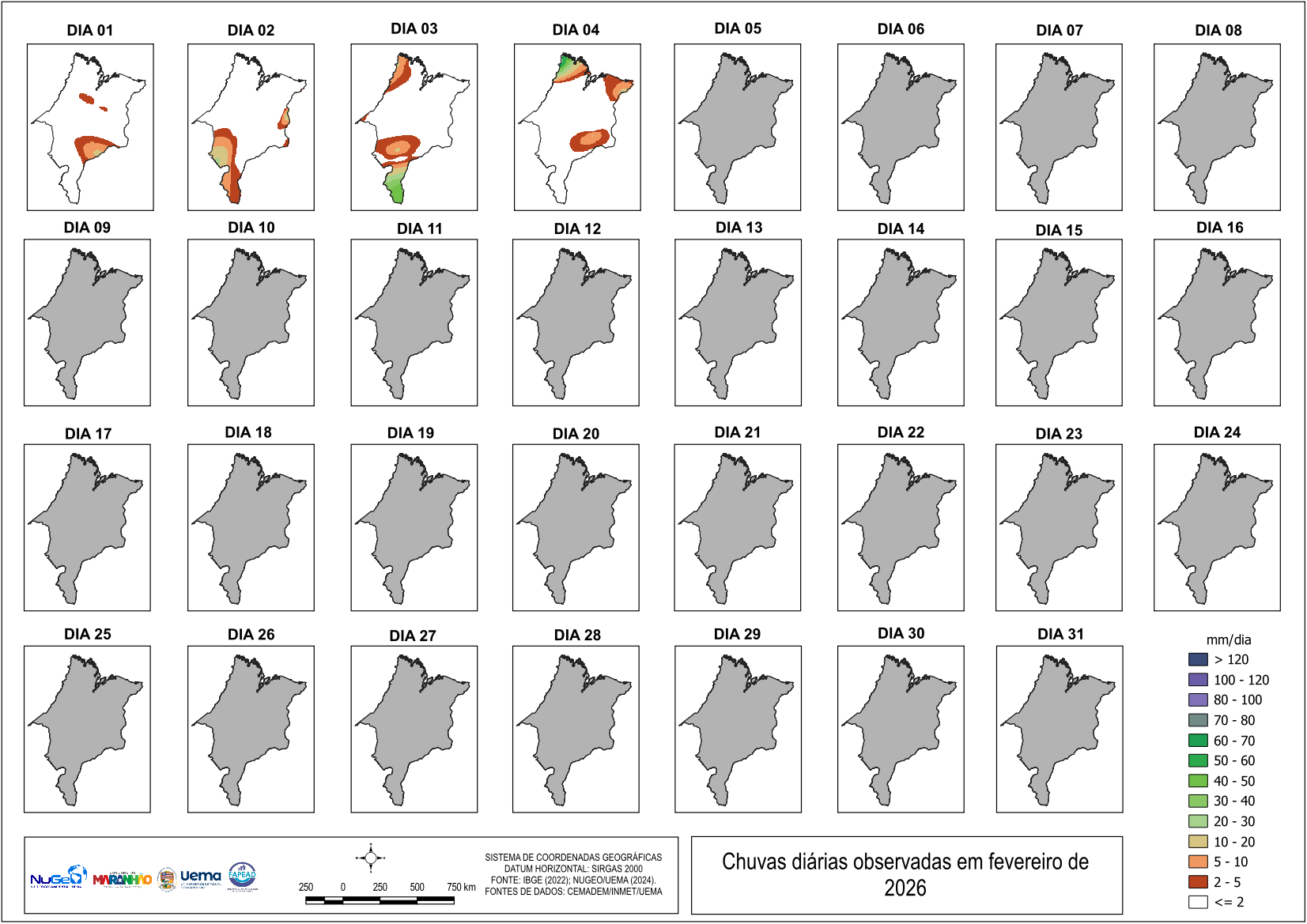 Mapas dos acumulados diários até o ultimo dia disponível