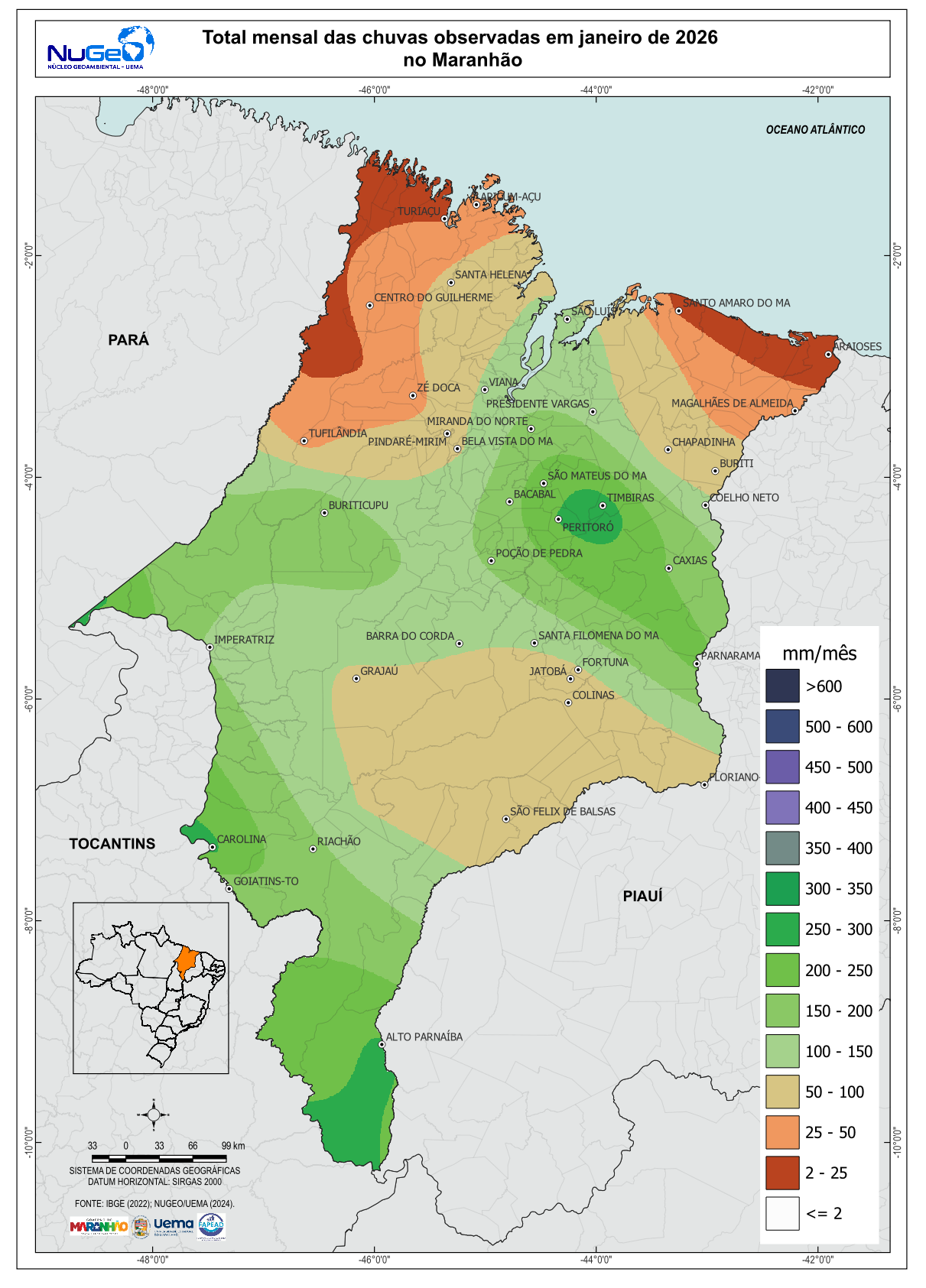 Avaliação mensal da chuva no maranhão (janeiro de 2026)