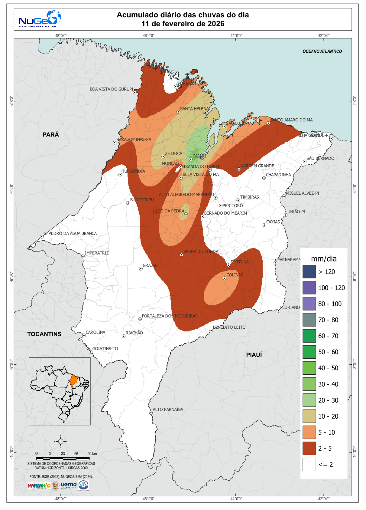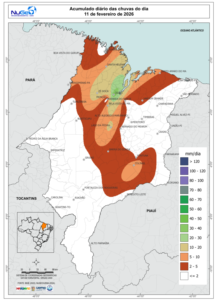 As chuvas das últimas 24 horas representam o acumulado das 10 horas (13 horas UTC) do dia anterior, com as 9 horas (12 UTC) do dia Atual, de acordo com a determinação técnica da Organização Meteorológica Mundial (OMM), que estabelece a leitura instrumental da precipitação no horário sinótico padrão das 12 UTC (9 horas local).