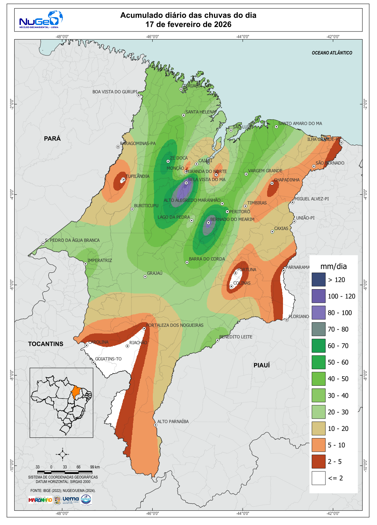 As chuvas das últimas 24 horas representam o acumulado das 10 horas (13 horas UTC) do dia anterior, com as 9 horas (12 UTC) do dia Atual, de acordo com a determinação técnica da Organização Meteorológica Mundial (OMM), que estabelece a leitura instrumental da precipitação no horário sinótico padrão das 12 UTC (9 horas local).