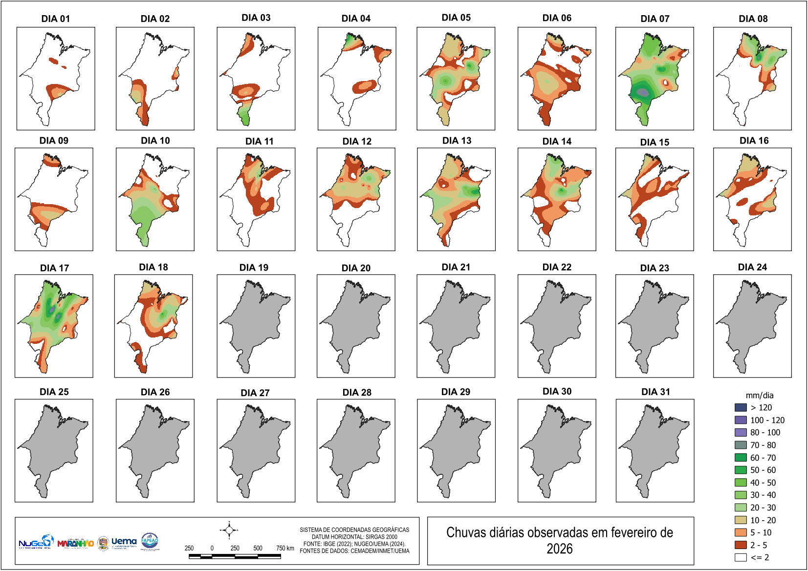Mapas dos acumulados diários até o ultimo dia disponível