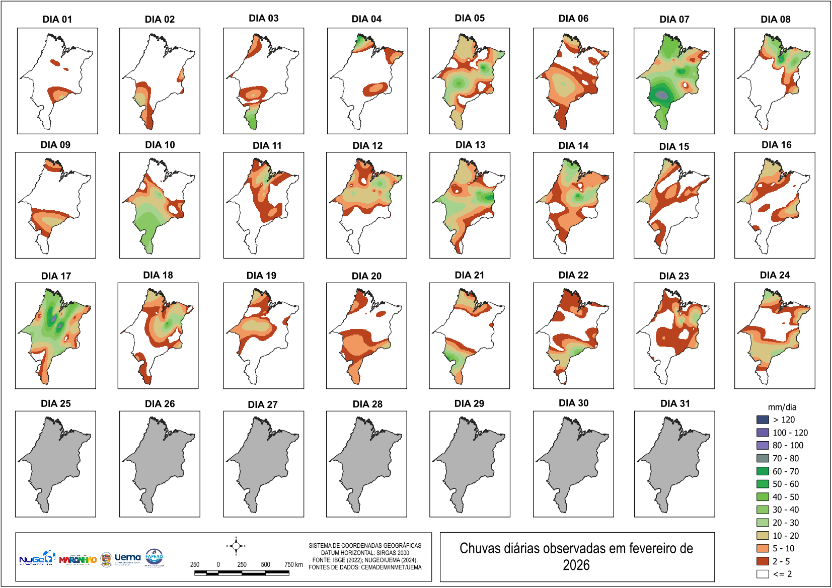 Mapas dos acumulados diários até o ultimo dia disponível