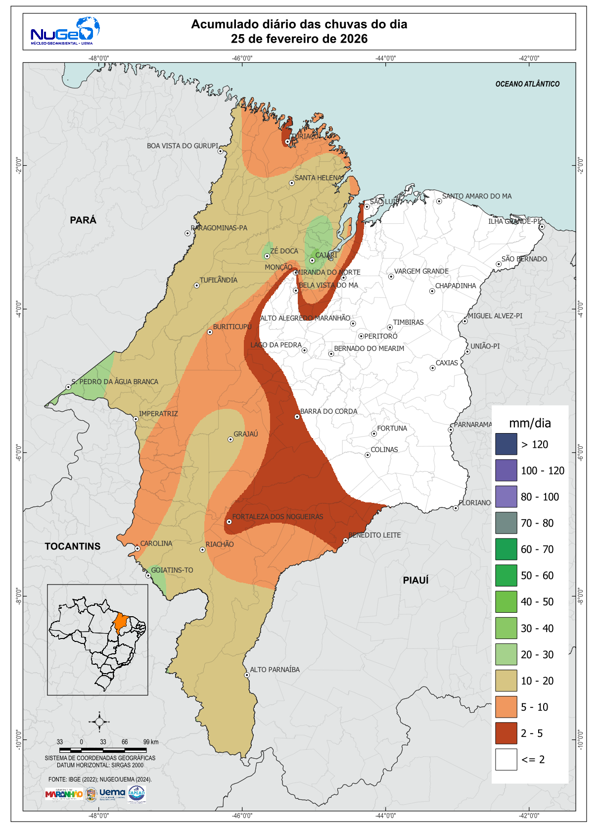 As chuvas das últimas 24 horas representam o acumulado das 10 horas (13 horas UTC) do dia anterior, com as 9 horas (12 UTC) do dia Atual, de acordo com a determinação técnica da Organização Meteorológica Mundial (OMM), que estabelece a leitura instrumental da precipitação no horário sinótico padrão das 12 UTC (9 horas local).