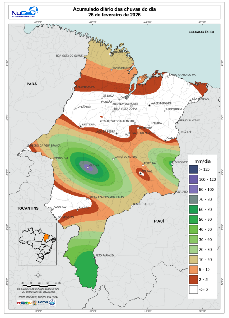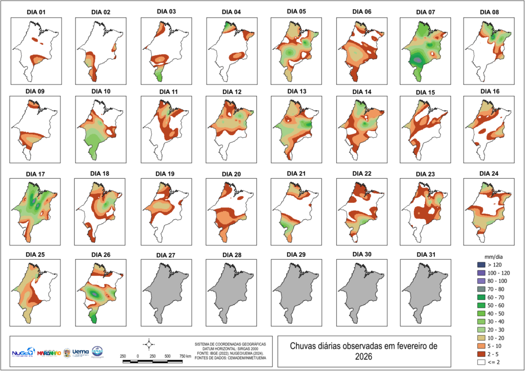 As chuvas das últimas 24 horas representam o acumulado das 10 horas (13 horas UTC) do dia anterior, com as 9 horas (12 UTC) do dia Atual, de acordo com a determinação técnica da Organização Meteorológica Mundial (OMM), que estabelece a leitura instrumental da precipitação no horário sinótico padrão das 12 UTC (9 horas local).