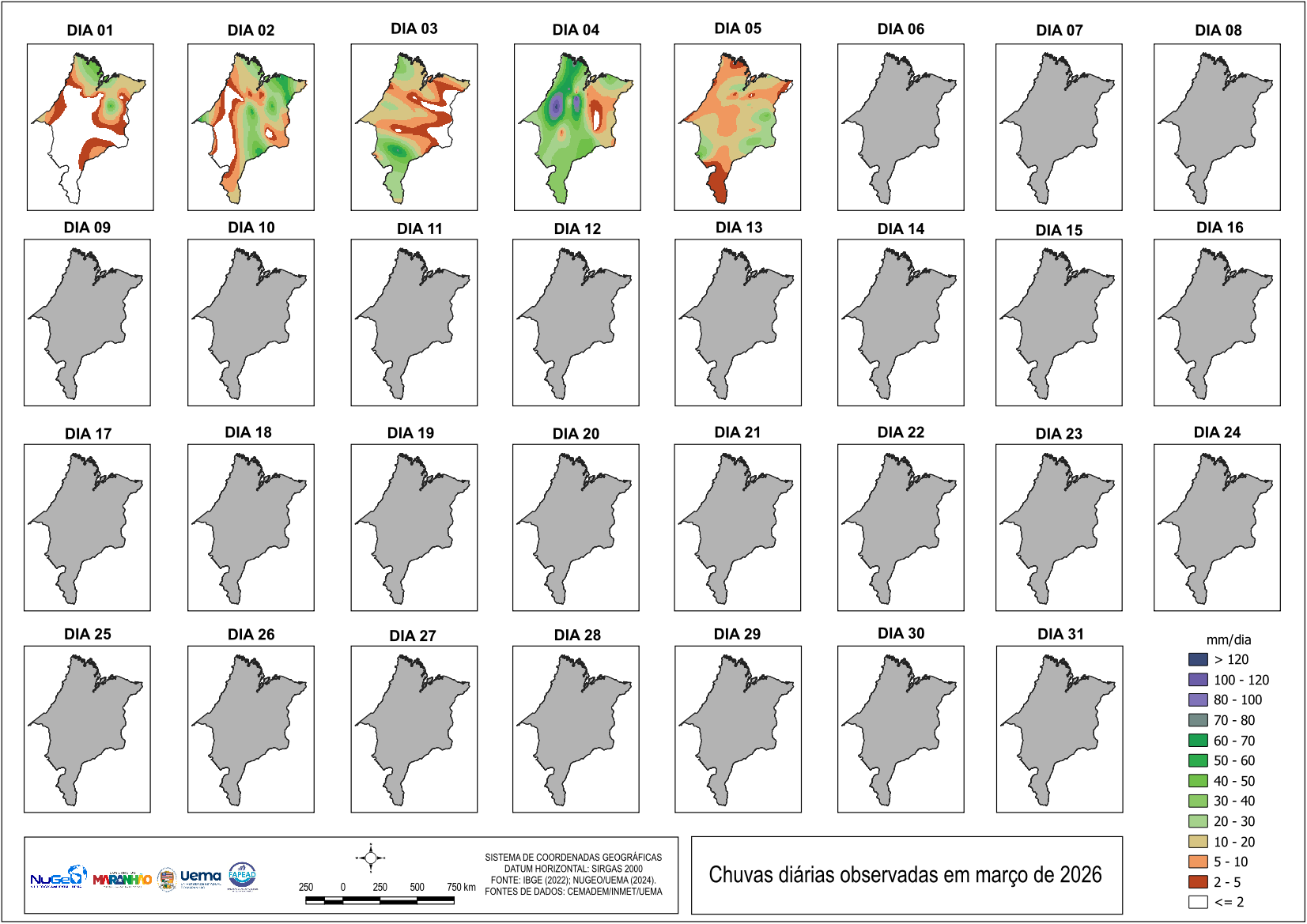 TABELA DAS CHUVAS EM MARÇO DE 2026 NO ESTADO DO MARANHÃO (mm)