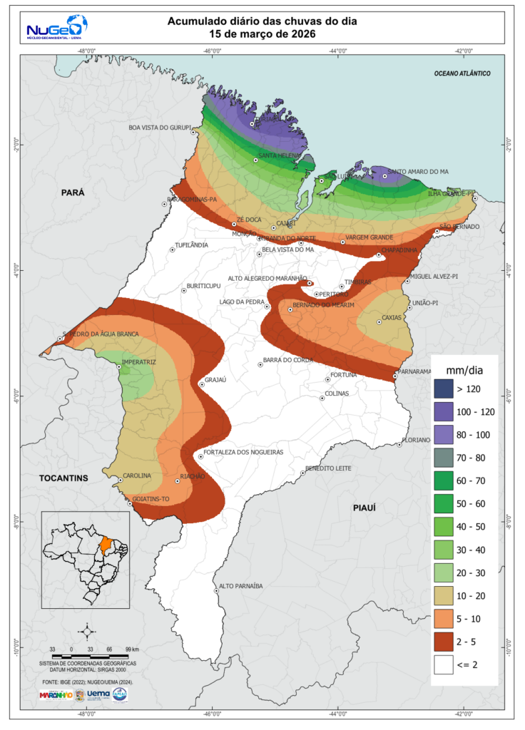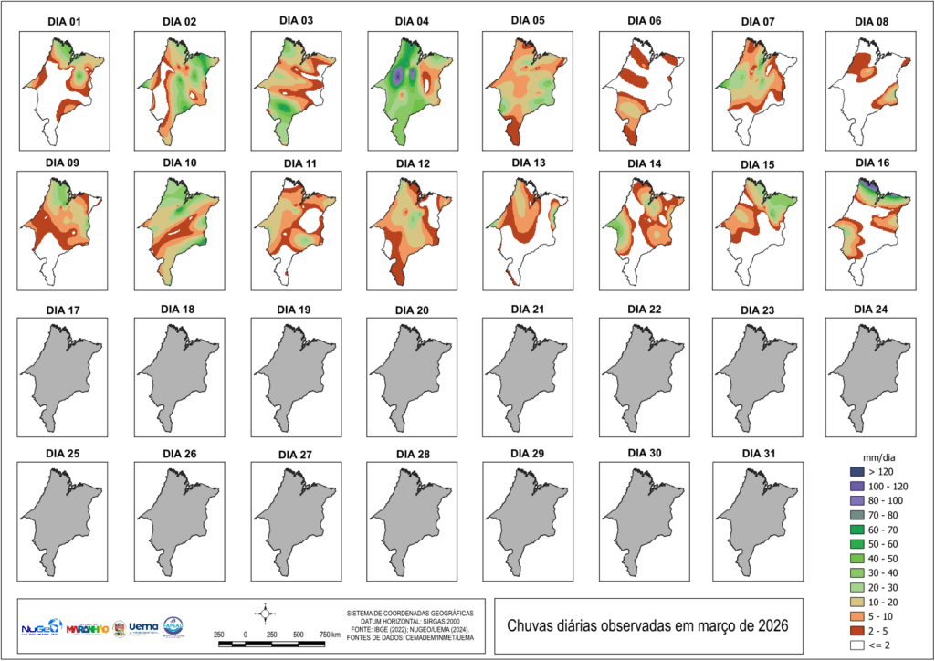 TABELA DAS CHUVAS EM MARÇO DE 2026 NO ESTADO DO MARANHÃO (mm) até o último dia disponível