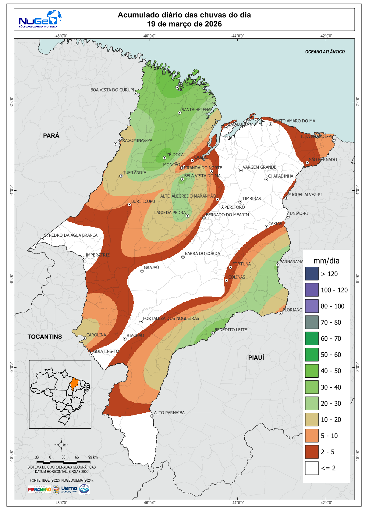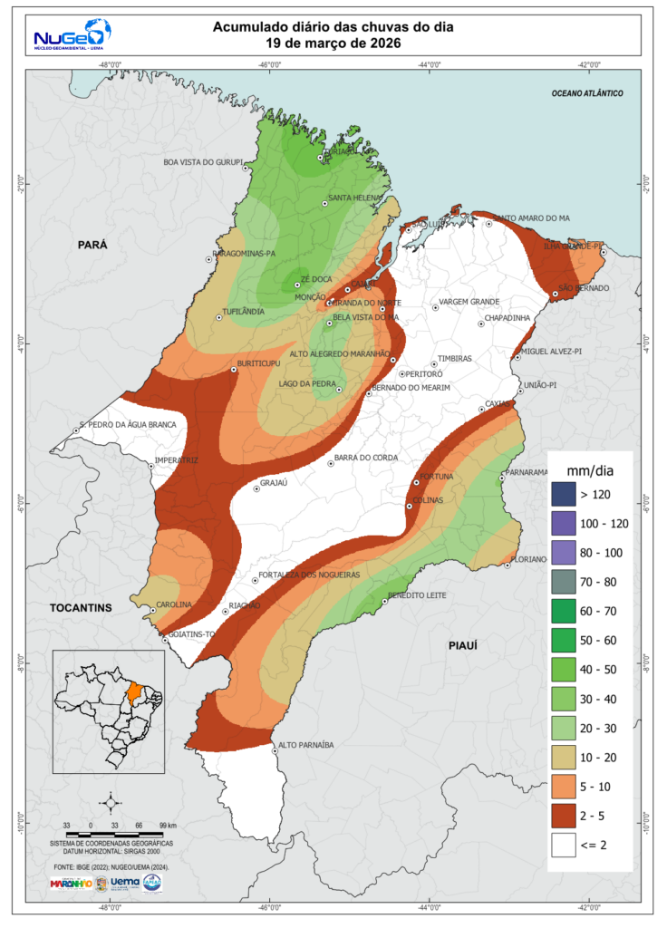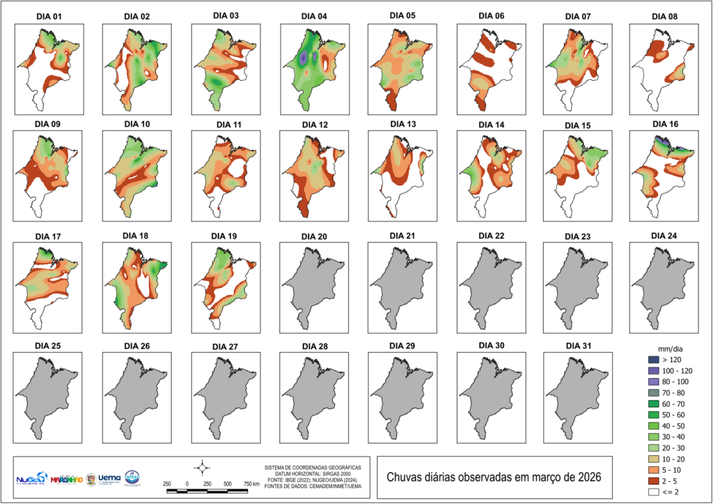 TABELA DAS CHUVAS EM MARÇO DE 2026 NO ESTADO DO MARANHÃO (mm) até o último dia disponível