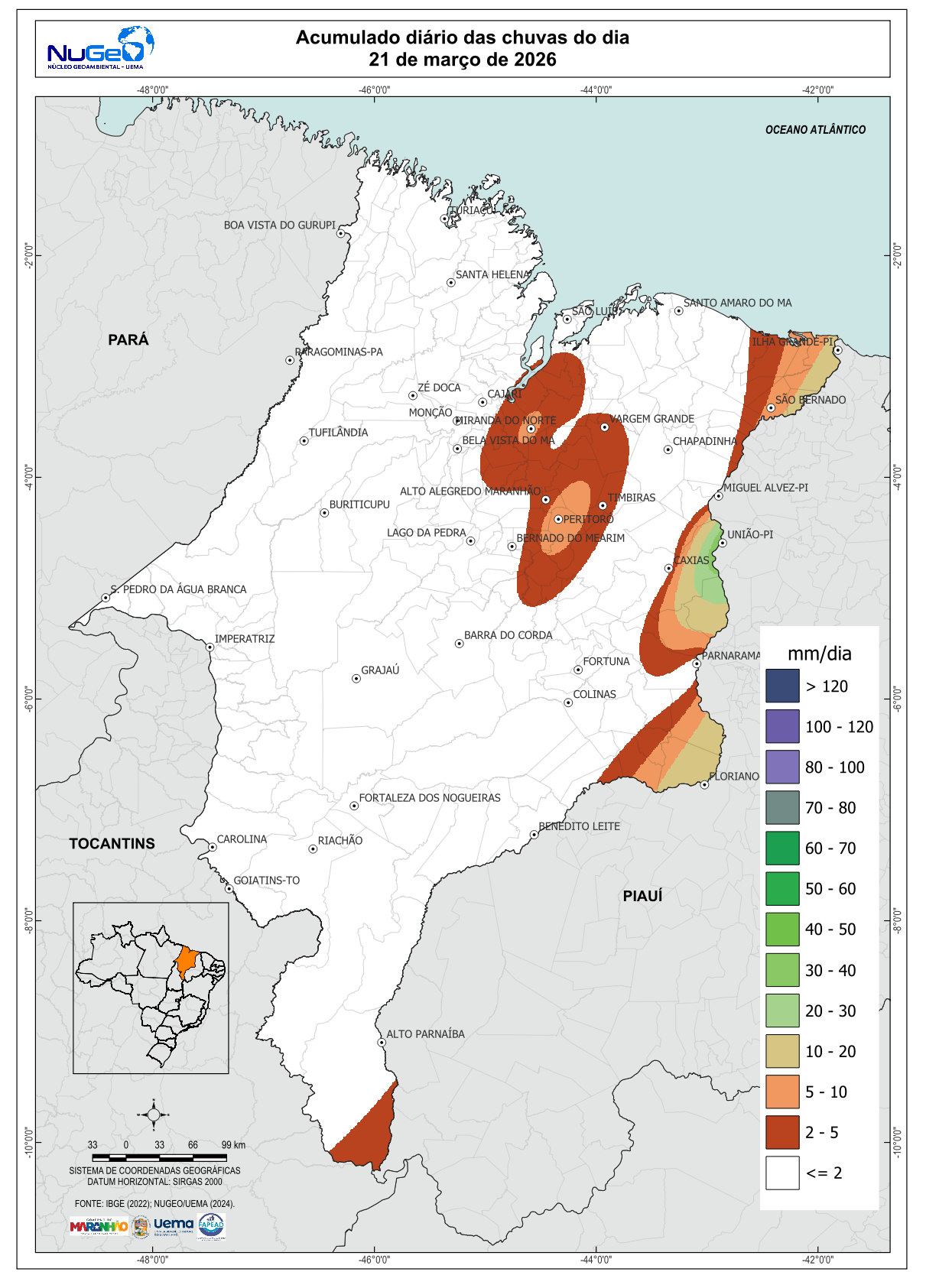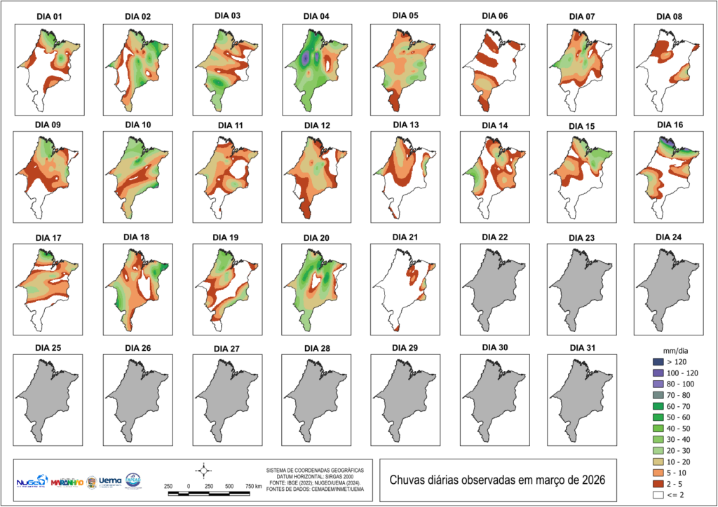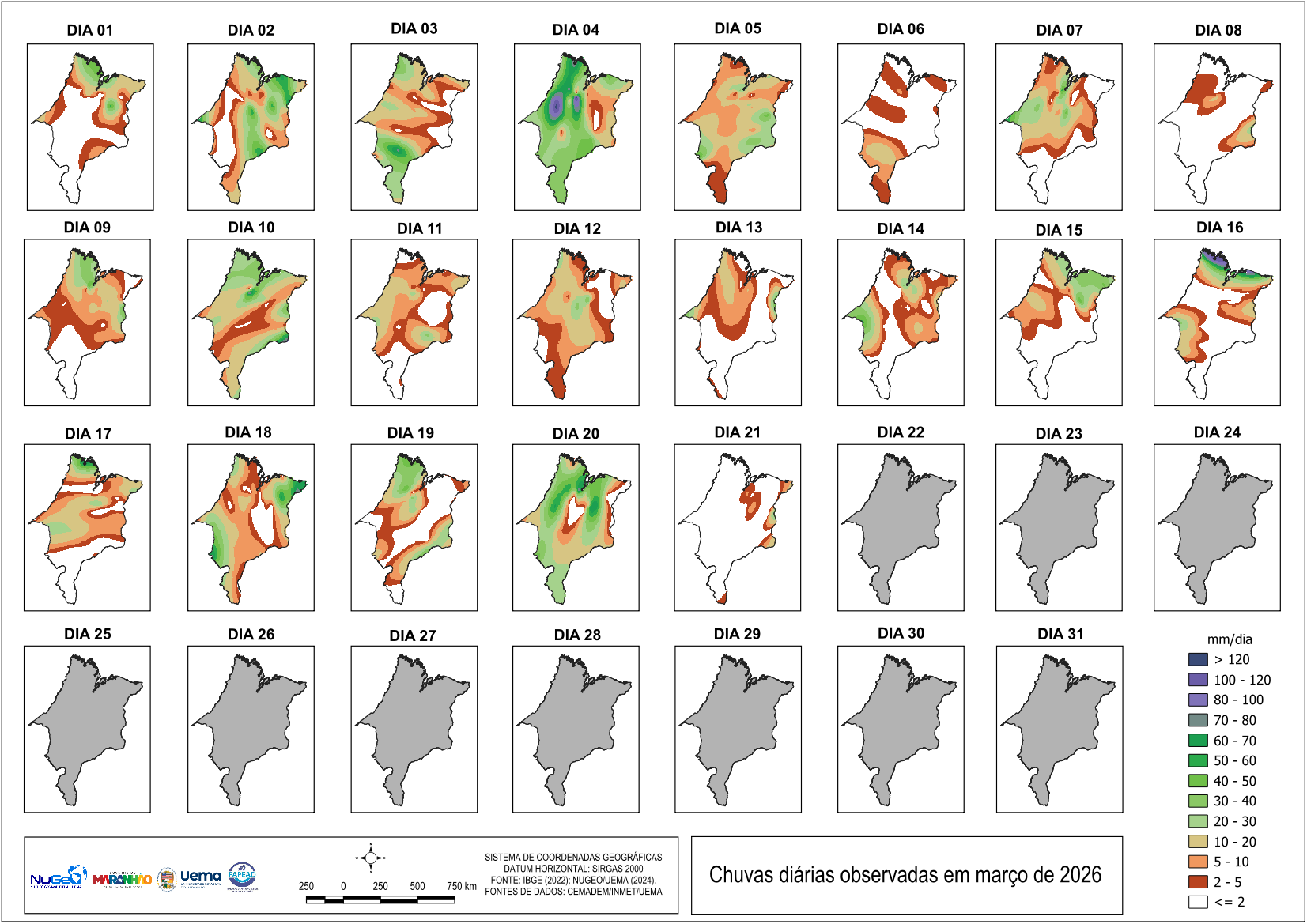 TABELA DAS CHUVAS EM MARÇO DE 2026 NO ESTADO DO MARANHÃO (mm) até o último dia disponível
