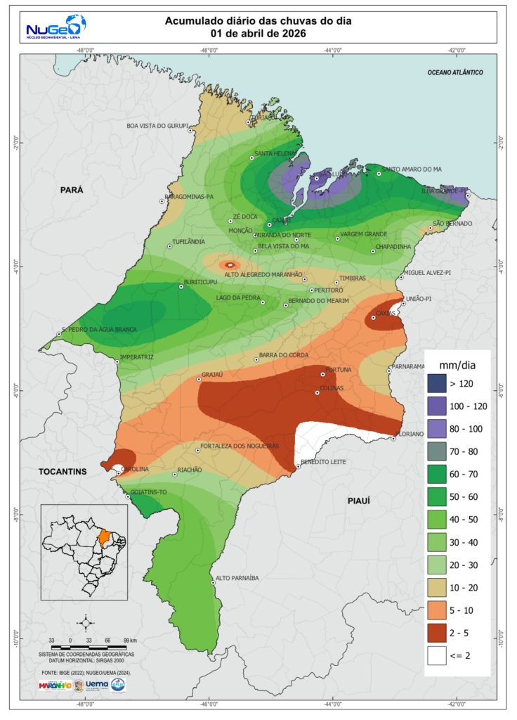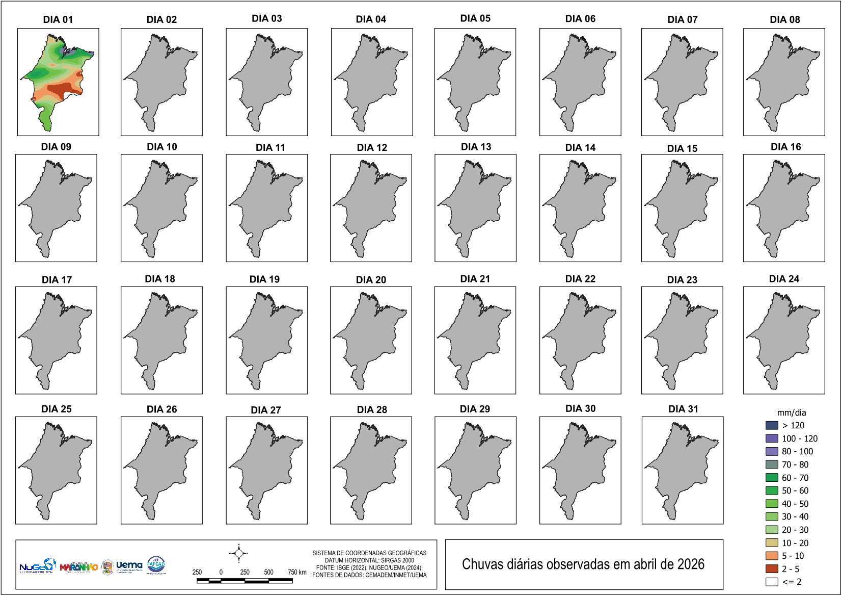 TABELA DAS CHUVAS EM ABRIL DE 2026 NO ESTADO DO MARANHÃO (mm) até o último dia disponível