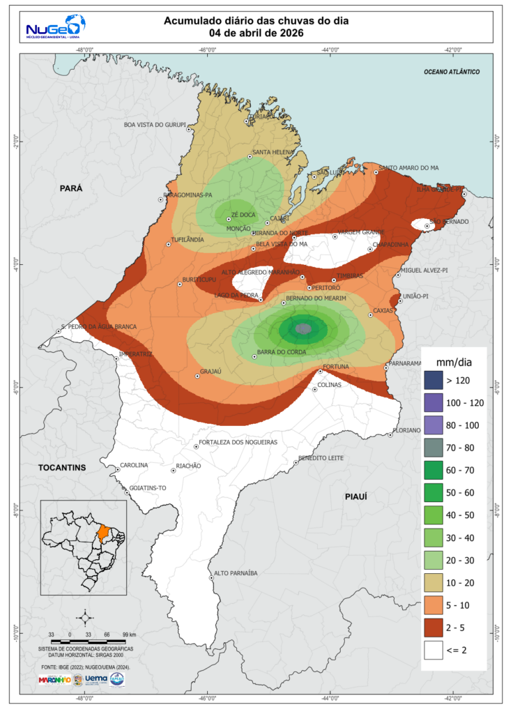 TABELA DAS CHUVAS EM ABRIL DE 2026 NO ESTADO DO MARANHÃO (mm) até o último dia disponível