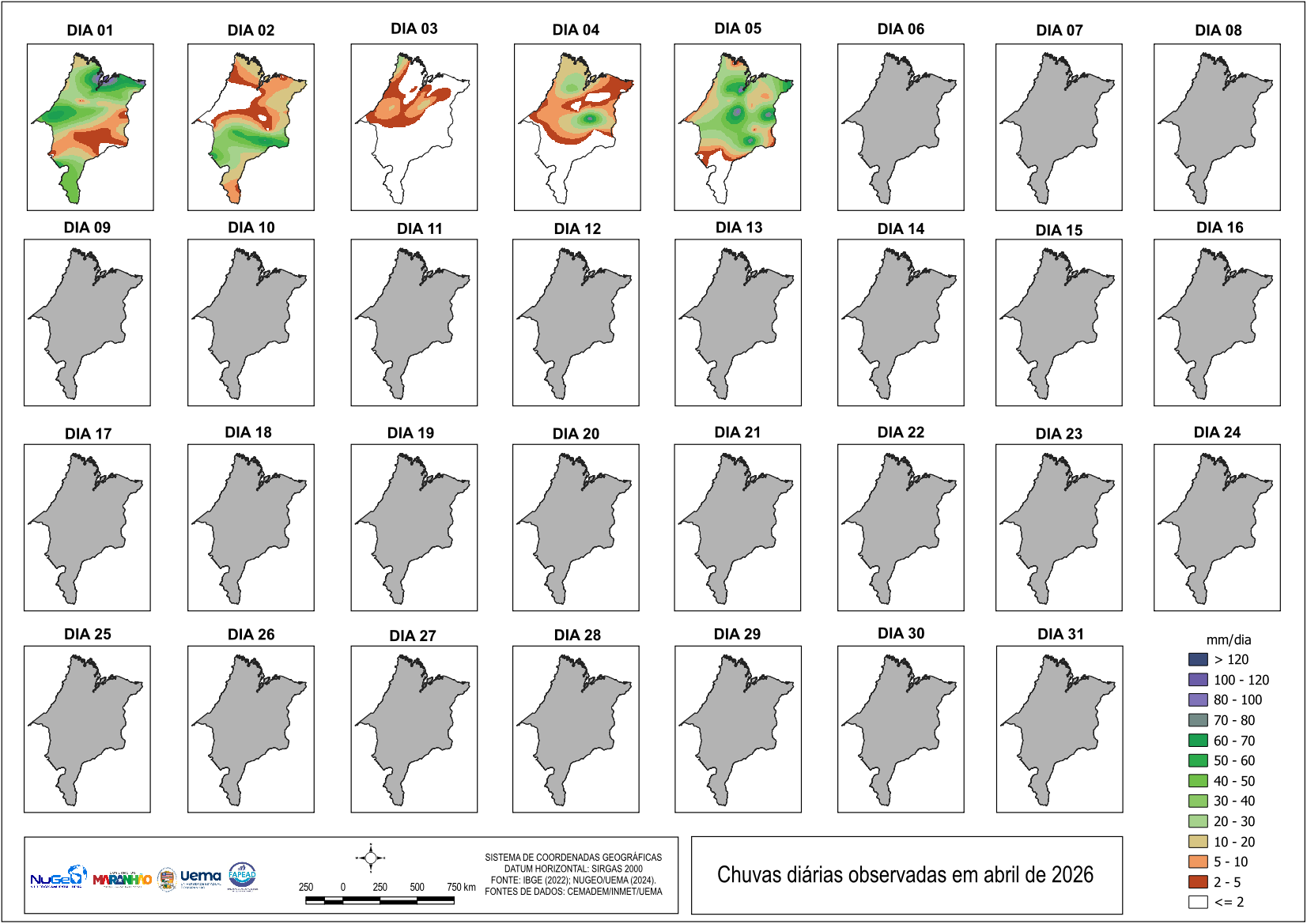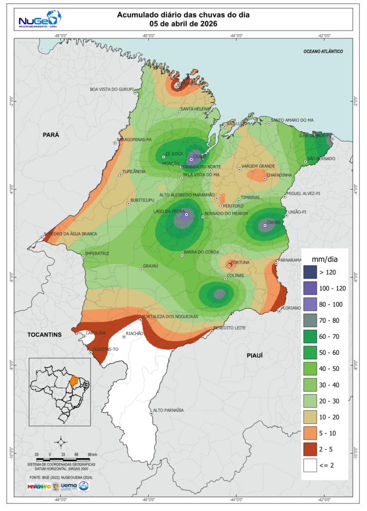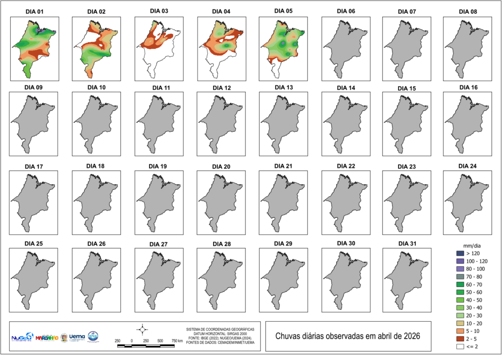 TABELA DAS CHUVAS EM ABRIL DE 2026 NO ESTADO DO MARANHÃO (mm) até o último dia disponível