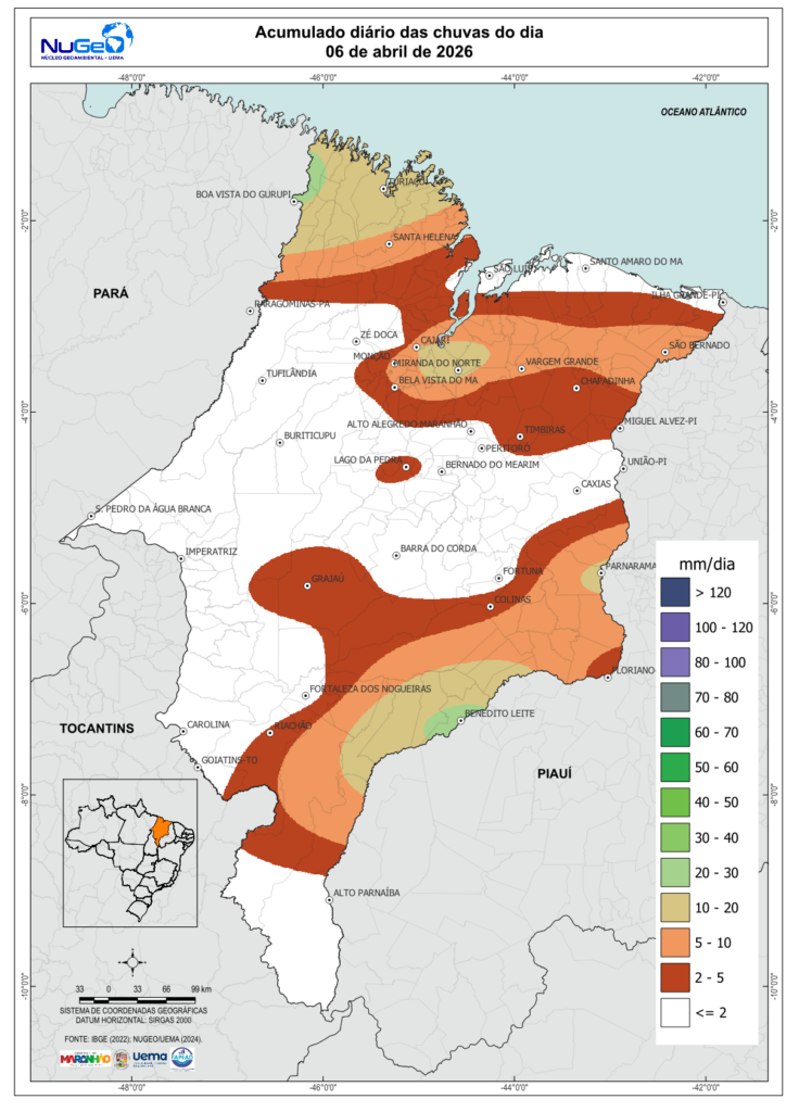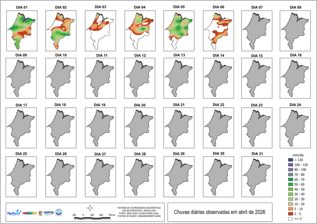 TABELA DAS CHUVAS EM ABRIL DE 2026 NO ESTADO DO MARANHÃO (mm) até o último dia disponível