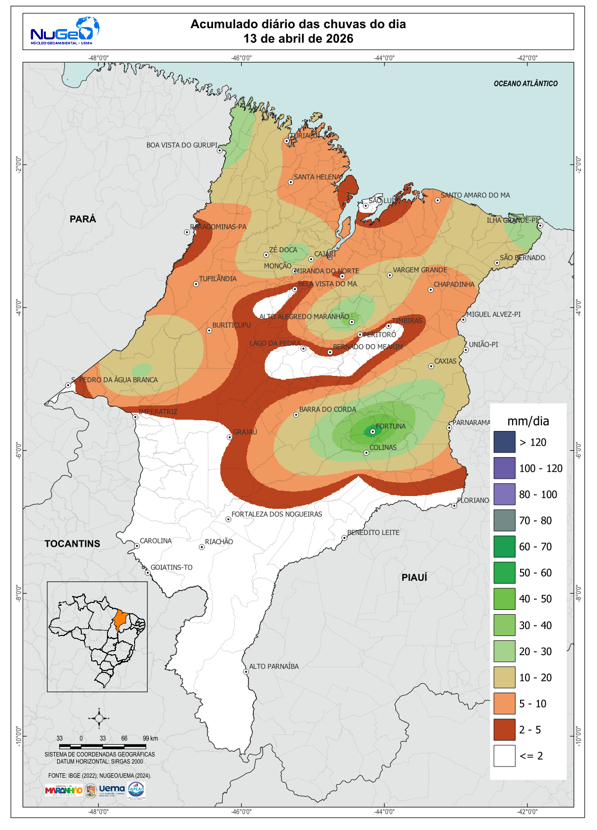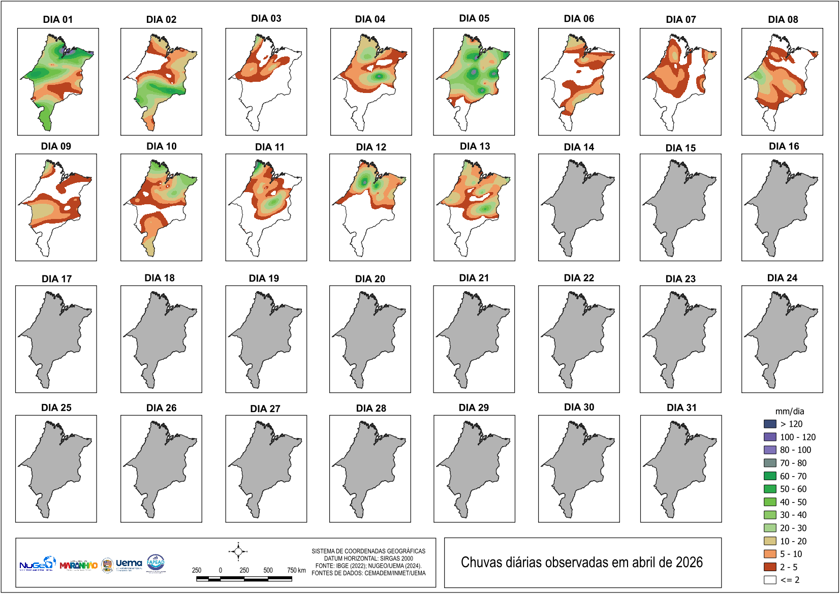 TABELA DAS CHUVAS EM ABRIL DE 2026 NO ESTADO DO MARANHÃO (mm) até o último dia disponível