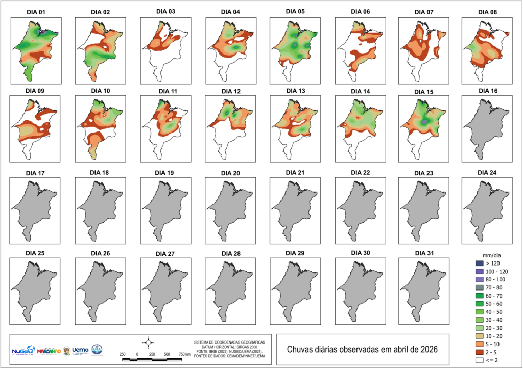 TABELA DAS CHUVAS EM ABRIL DE 2026 NO ESTADO DO MARANHÃO (mm) até o último dia disponível