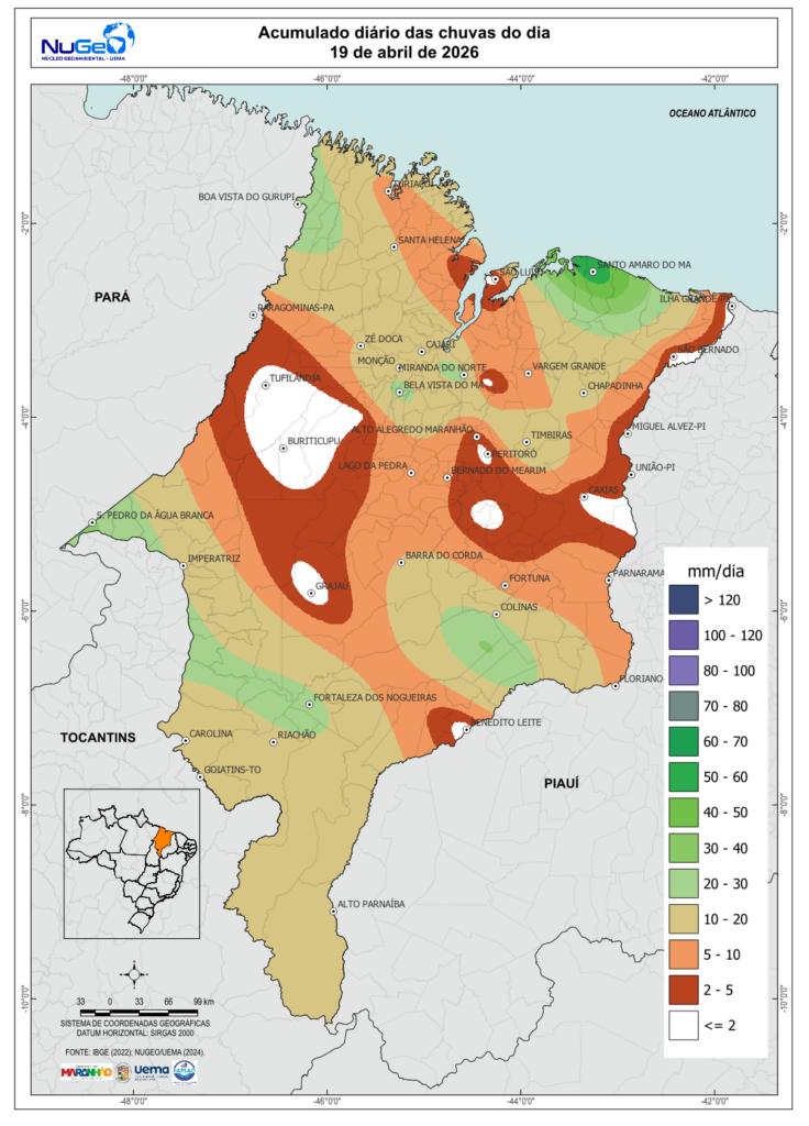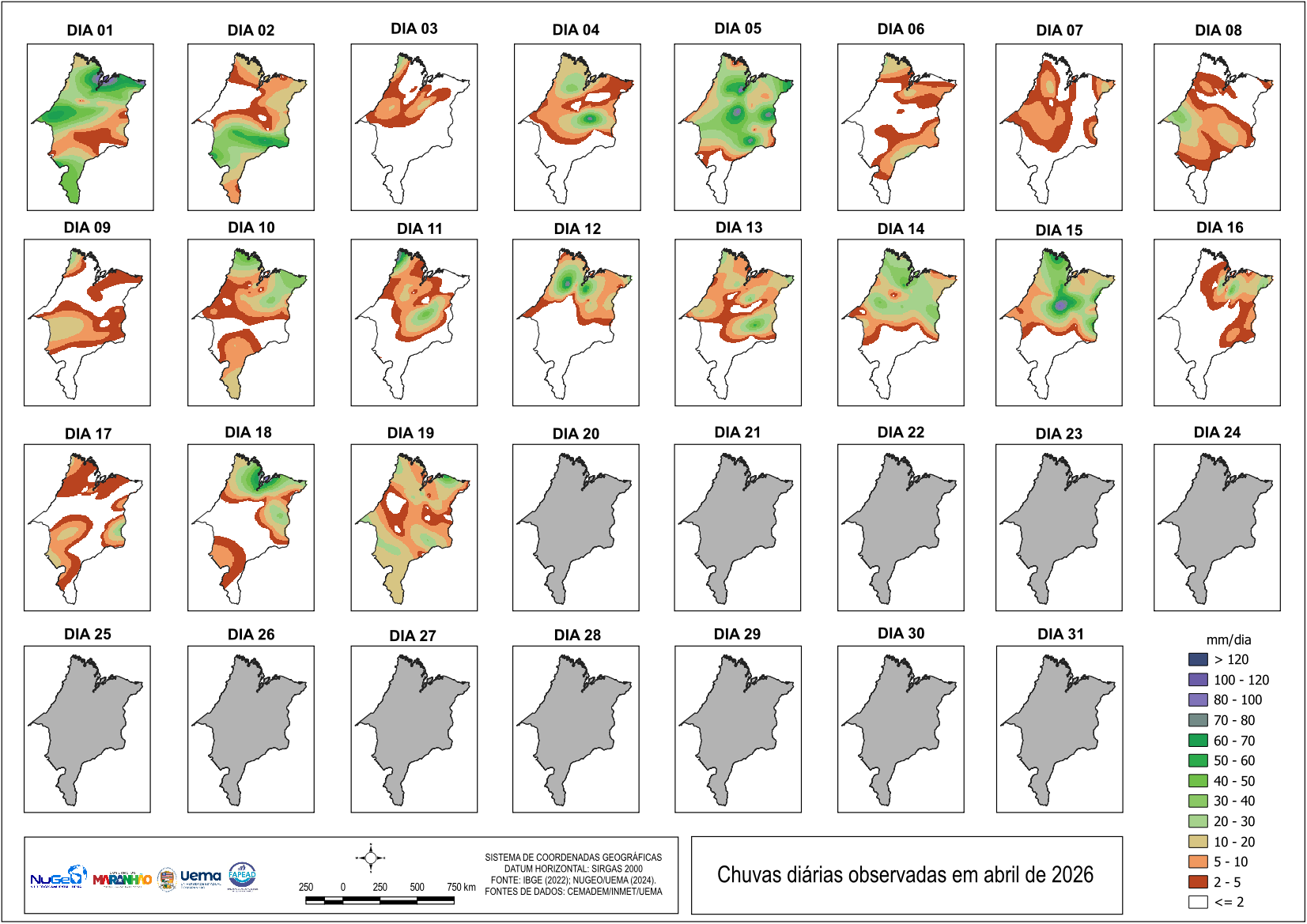 TABELA DAS CHUVAS EM ABRIL DE 2026 NO ESTADO DO MARANHÃO (mm) até o último dia disponível