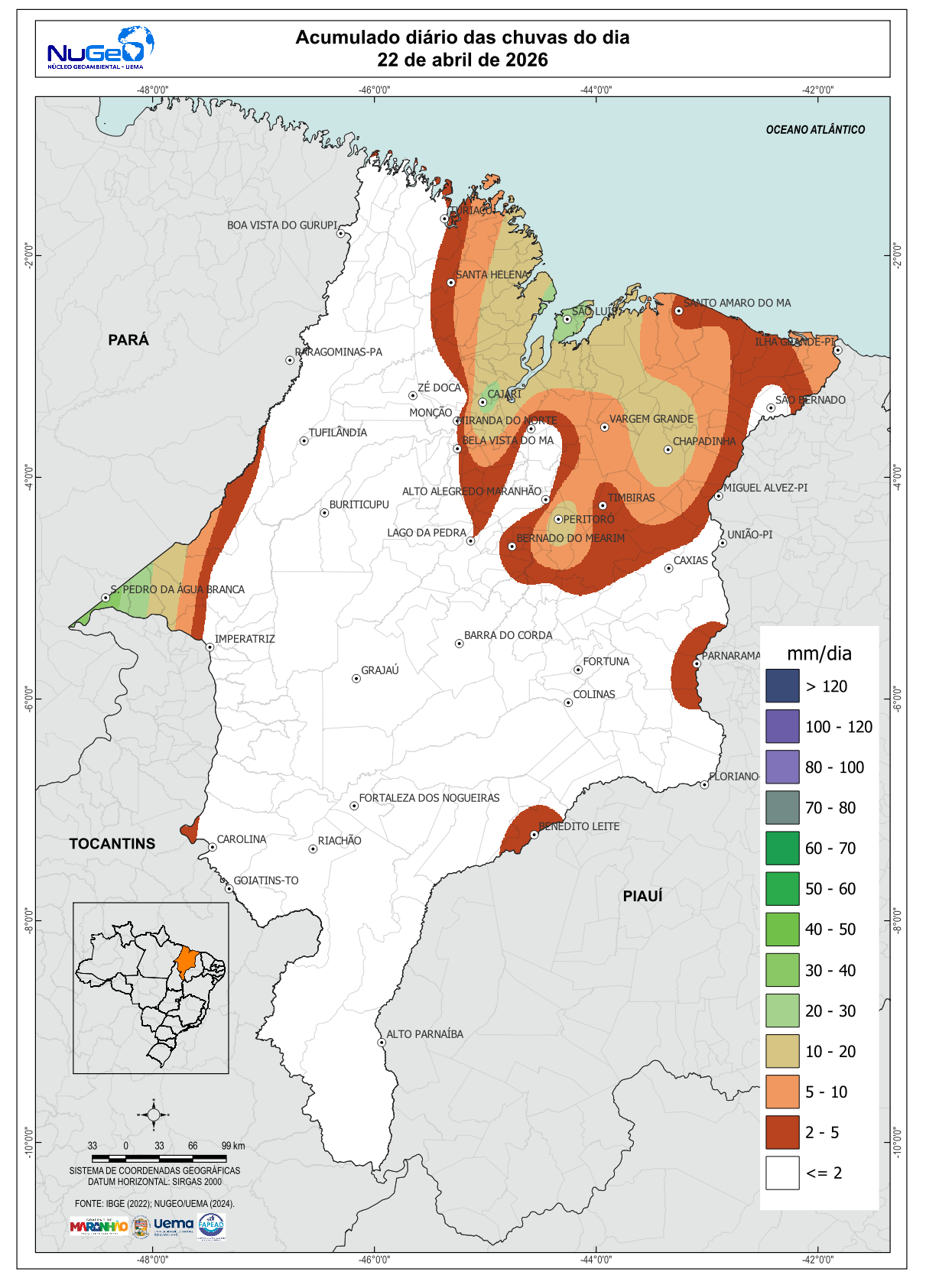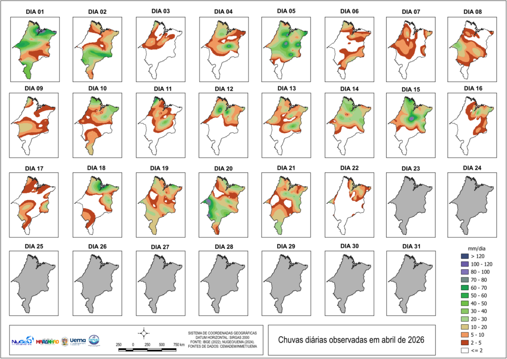 TABELA DAS CHUVAS EM ABRIL DE 2026 NO ESTADO DO MARANHÃO (mm) até o último dia disponível